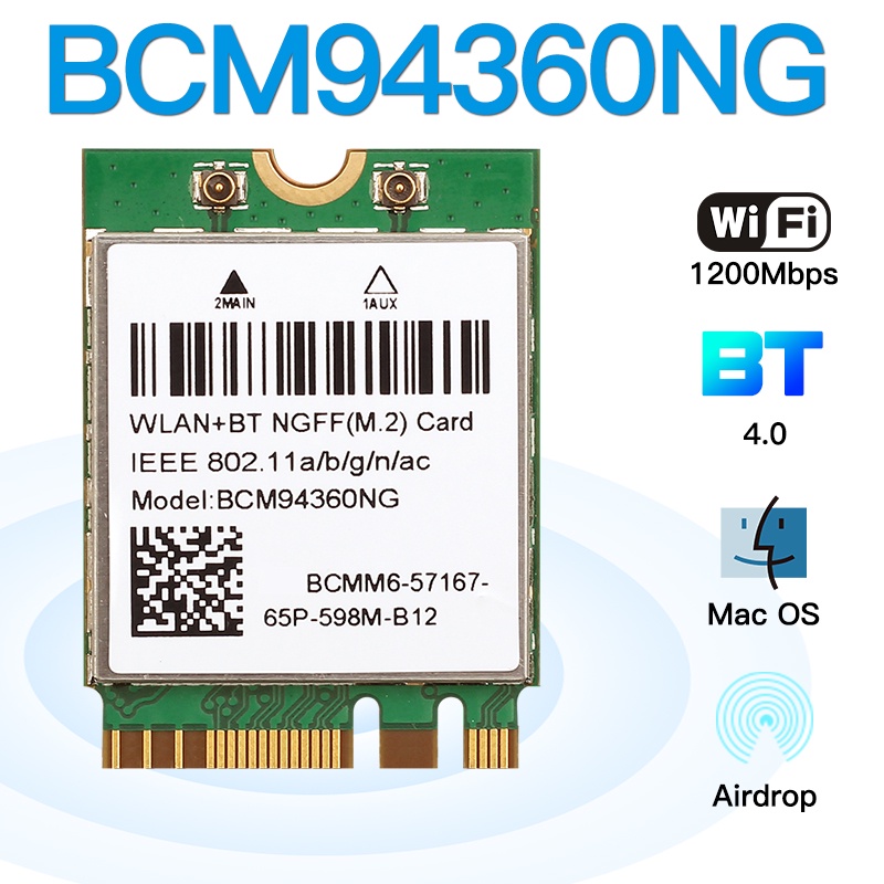 Wireless Hackintosh Bcm94352Z Bcm94360Ng WiFi Card Ngff M.2 1200 Mbps Hackintosh Compatible Wifi Bluetooth Card broadcom wifi/bluetooth [guide] wifi and bluetooth working out of box on macos with apple branded broadcom. i want to be able to use bluetooth, handoff, continuity, and airdrop when i hackintosh my pc, and make it work just like a real mac. natively supported broadcom pcie wifi/bt adapters are the best choice to have all apple/mac features. Hackintosh Compatible Wifi Bluetooth Card.